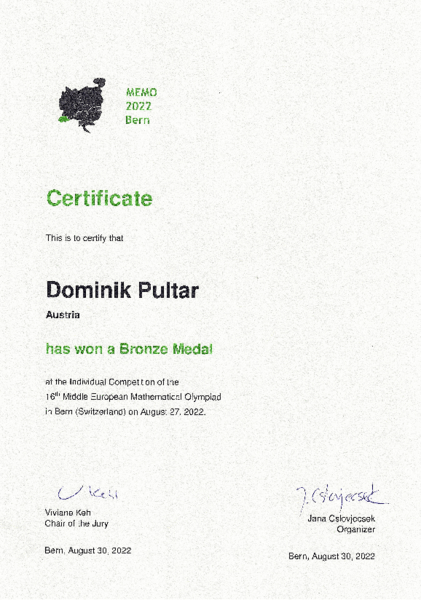 ... gewinnt im August 2022 die Bronze-Medaille bei der 16. europäischen Mathematikolympiade in Bern!