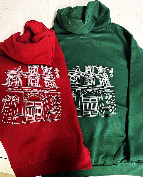 Wir freuen uns über die bunten Hoodies sowie T-Shirts und danken der Gewinnerin der 9. Marchetti Challenge, Nina Reithofer (Maturantin 2025), für das Design.